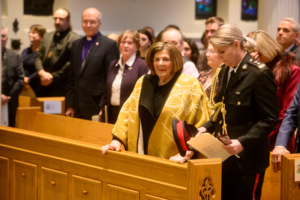 Archbishop Chatlain offered words of gratitude at the conclusion of the Mass, including for the civil and ecumenical guests, the multi-parish liturgical choir, those who planned and organized the liturgy and all who assembled to celebrate. Refreshments and fellowship followed at the Delta Marriot Hotel.