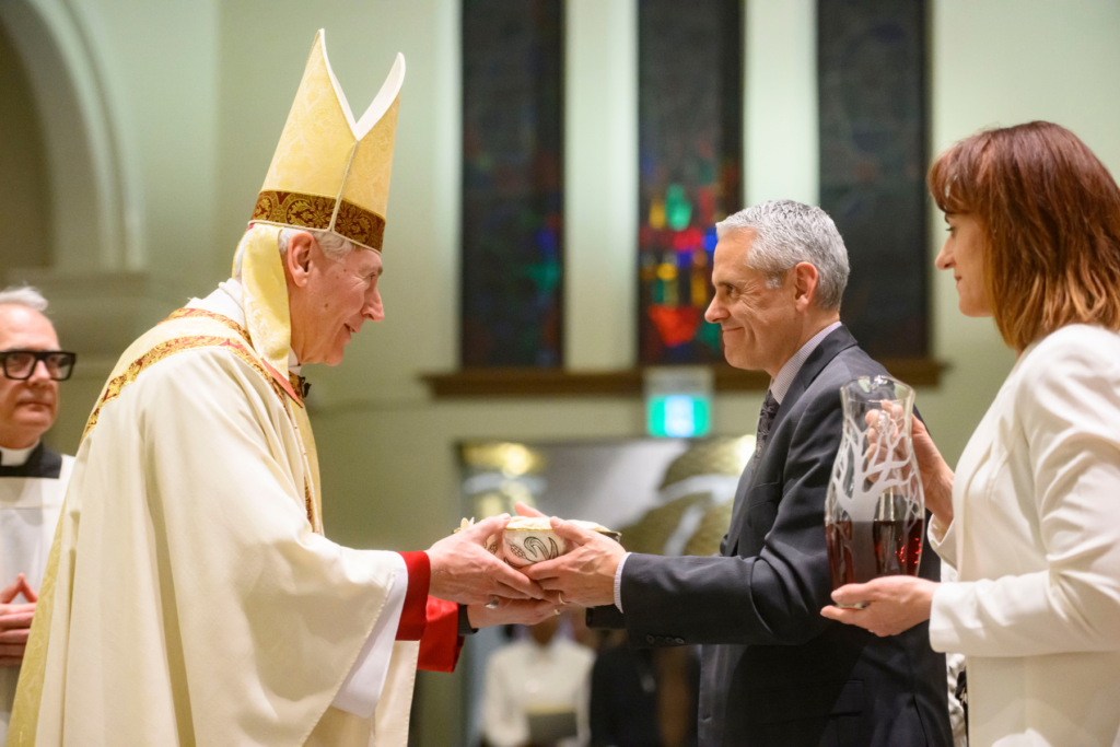 The spirit of welcome continued as representatives from the lay faithful, consecrated women and men, and the clergy of the Archdiocese of Winnipeg came forward to greet and welcome their new Archbishop personally. This heartfelt exchange concluded the formal installation ceremony. Afterwards, the Glory to God was sung, and Mass continued.