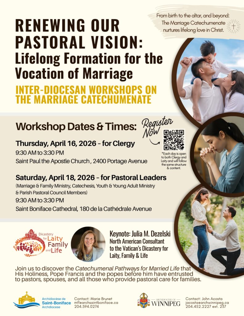 The Archdiocese warmly invites Parish Sponsor Couples for Marriage Preparation, Catechists, Youth Ministry Coordinators, Parish Pastoral Council (PPC) members, and clergy to attend our upcoming Marriage Catechumenate Workshop.