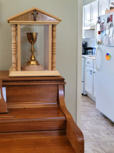 “We ended up bringing it to the cabin, and things got really busy – it’s always just a little chaotic with kids.” Kristina laughs, “We prayed with it every evening as part of our bedtime prayer routine, and we pointed out the special chalice that we could see during prayer time and talked to our kids about how God has something special planned for each of us.”