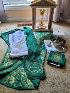 Many people can be thanked for its creation, including Fr. Wayne Morrisey, who spearheaded the initiative. Along with the chalice, families with young boys were offered the opportunity to borrow a set of child-sized priestly vestments and a Mass kit that children can use to pretend and so enter, in their own way, a dialogue with God about the Mass. This beautiful set was donated by an American ministry called “Wee Apostles and Disciples.”