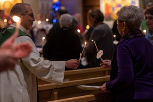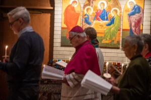 One of the striking moments of the celebration was the passing of light throughout the Church. Unlit candles were passed around like those you would find at the Easter Vigil. Bishop Andriy lit his candle first from a candle and then shared the light with his fellow Church leaders. From there, these Church leaders went throughout the church and lit the candles of those present.